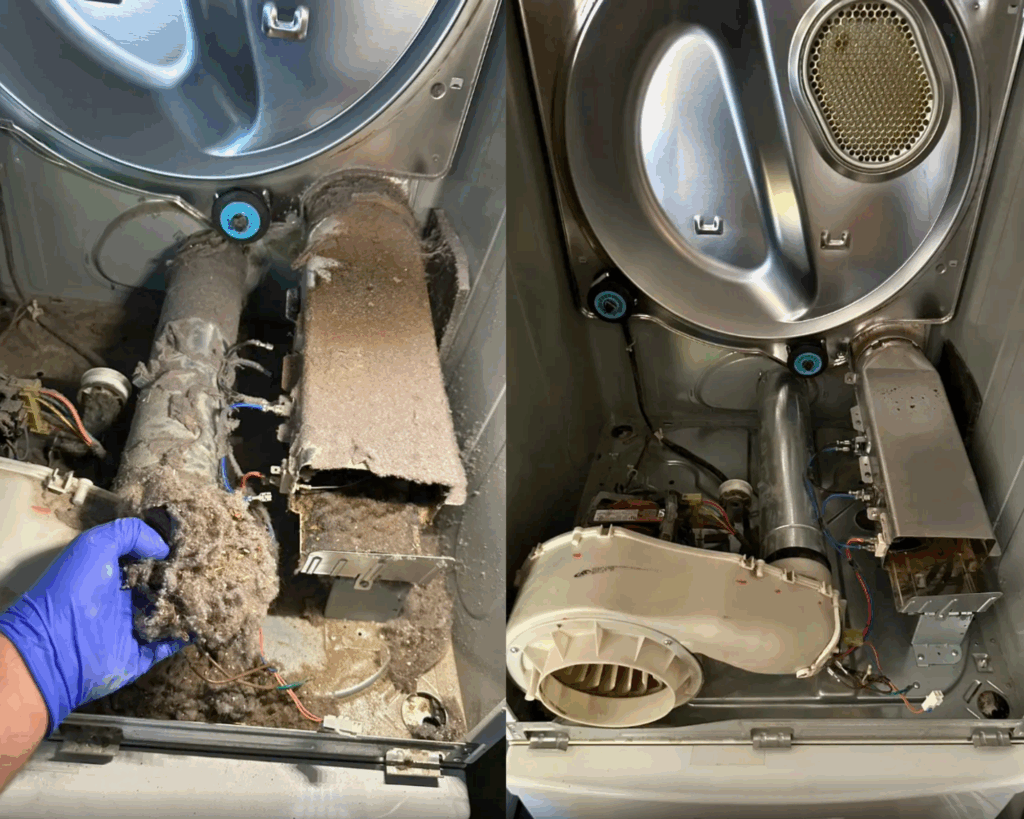 After the service, the dryer was restored to safe operation, airflow improved significantly, and drying time returned to normal. Preventive dryer maintenance like this not only improves performance but also extends the life of the appliance. The customer was relieved to know their dryer was now safe and energy-efficient.