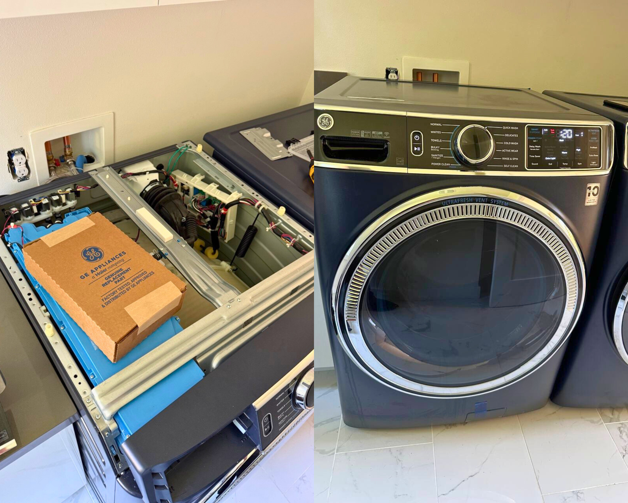 The result was a smooth-running stacked washer and dryer that dried clothes quickly again. This washer and dryer repair not only fixed the heating issue but also improved airflow and efficiency. The customer was especially happy because the unit is located in a closet, and regular dryer maintenance will now keep it safe and reliable.